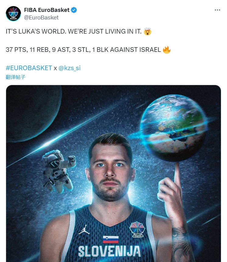 Ngôi sao người Slovenia Doncic vẫn kiểm soát tình hình tổng thể trong trò chơi này và trò chơi có ảnh hưởng duy nhất. Anh ta đã chơi 33 phút 39 giây, thực hiện 12 trong số 21 cú sút, 4 trong số 11 con trỏ ba điểm, 9 trong số 9 cú ném miễn phí, ghi được 37 điểm, 11 rebound, 9 hỗ trợ, 3 lần đánh cắp và 1 khối, thực hiện 7 doanh thu và 4 lỗi, cộng hoặc giá trị âm +17. Sau trận đấu, Giải vô địch châu Âu chính thức đã ca ngợi màn trình diễn của Doncic, đã tạo ra một poster cho Doncic, và viết bên cạnh nó: "Đây là thế giới của Luca, chúng tôi chỉ sống trong đó. Chống lại Israel, 37 điểm, 11 rebound, 9 hỗ trợ, 3 lần đánh cắp và 1 khối."