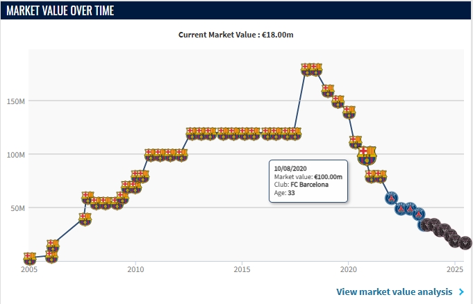 Messi có giá trị khi anh ấy 33 tuổi ↓